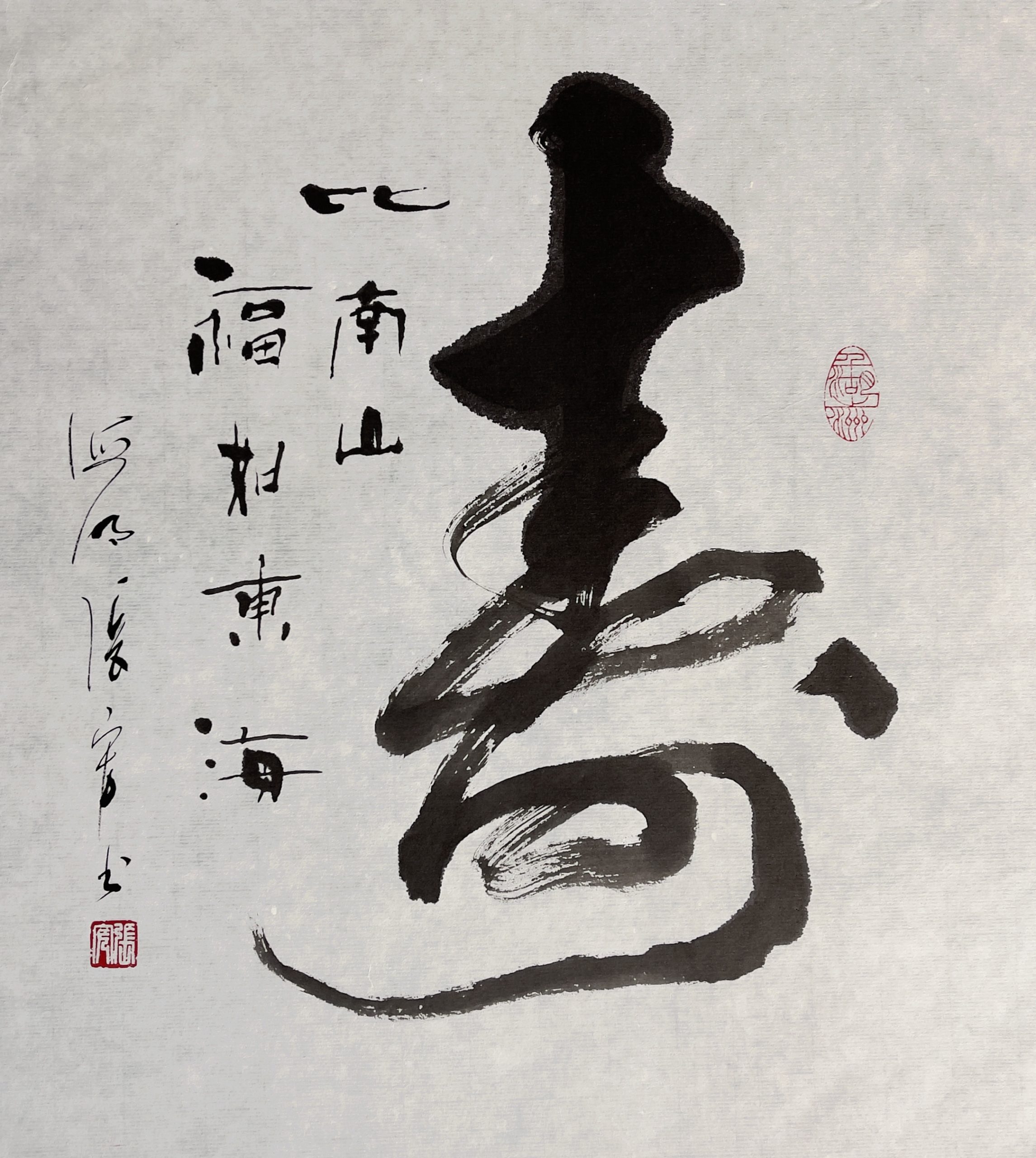 Longevity 壽 (壽比南山 福如東海) 海明張宏 朱文印: 千湖之州 13 x 12